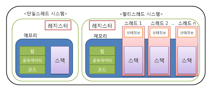 이 과정에서 하나의 프로세스 내에서 스택 영역을 제외한 데이터, 힙 영역을 공유하여 사용하기 떄문에 여러 스레드가 동시에 같은 변수나 자료구조에 접근하면 경쟁 상태(race condition), 데이터 손상이 발생할 수 있습니다.