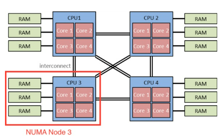 NUMA(Non-Uniform Memory Access) 구조에서는 여러 CPU가 각자의 로컬 메모리를 가지고 있습니다. CPU는 자신의 로컬 메모리에 빠르게 접근할 수 있지만, 다른 CPU의 메모리에 접근할 경우 느려집니다.